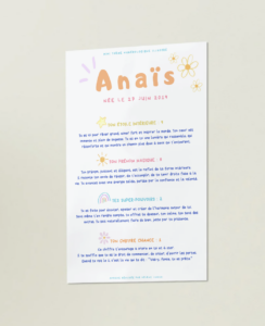 A partir du prénom et de la date de naissance, je crée une affiche numérique illustrée, 100% personnalisée.